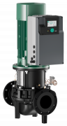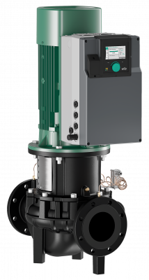 Høyeffektiv inlinepumpe med EC-motor og elektronisk effekttilpasning i tørrløperpumpeutførelse. Utførelse som ettrinns lavtrykk sentrifugalpumpe med flenstilkobling og mekanisk tetning.